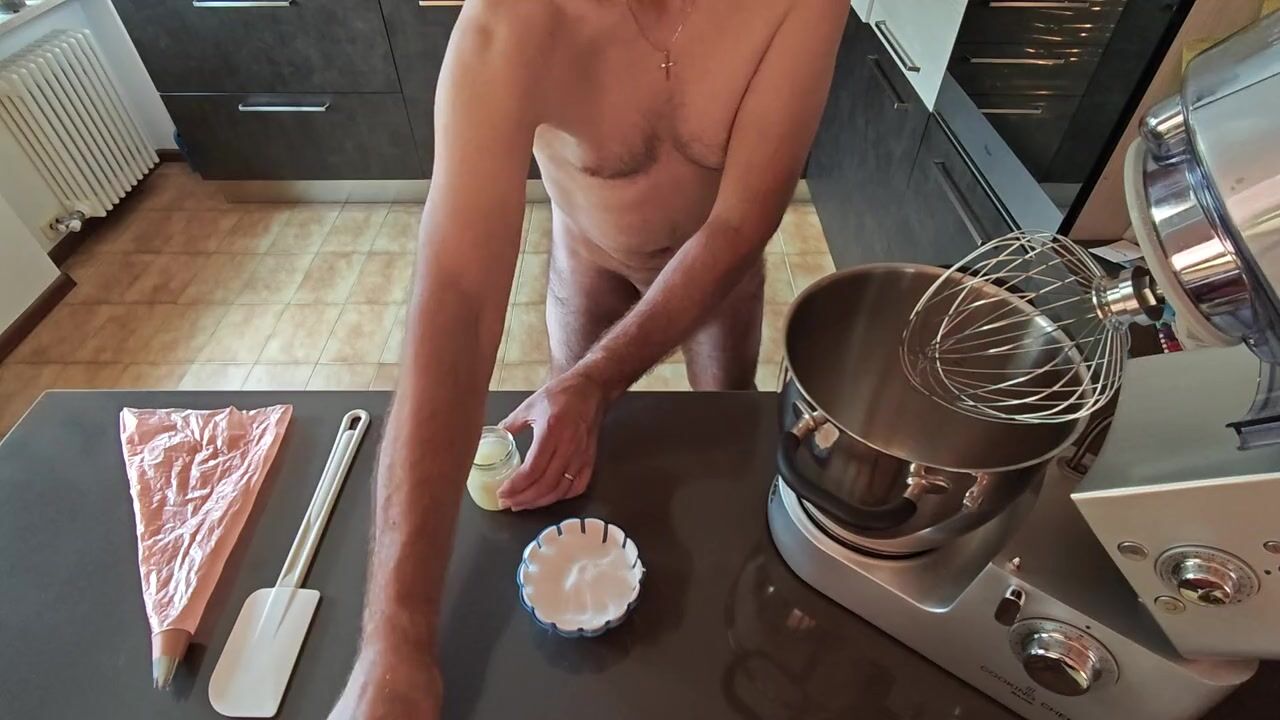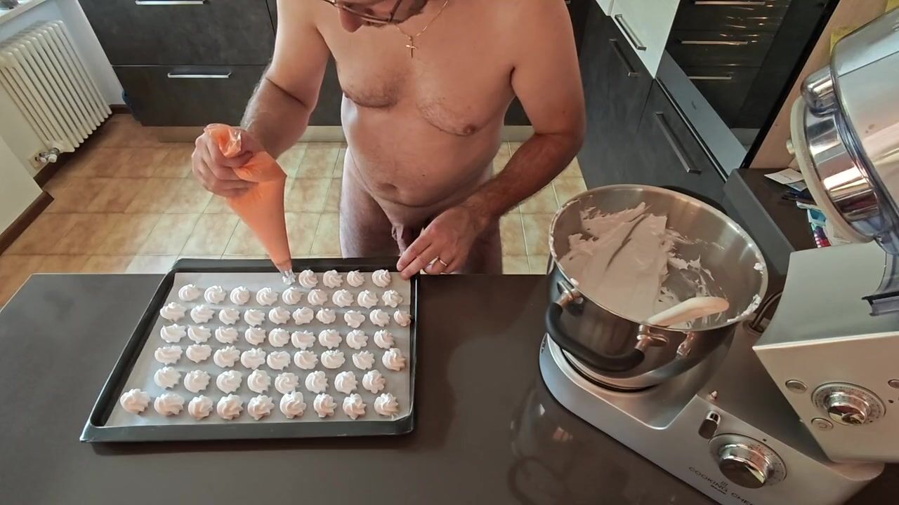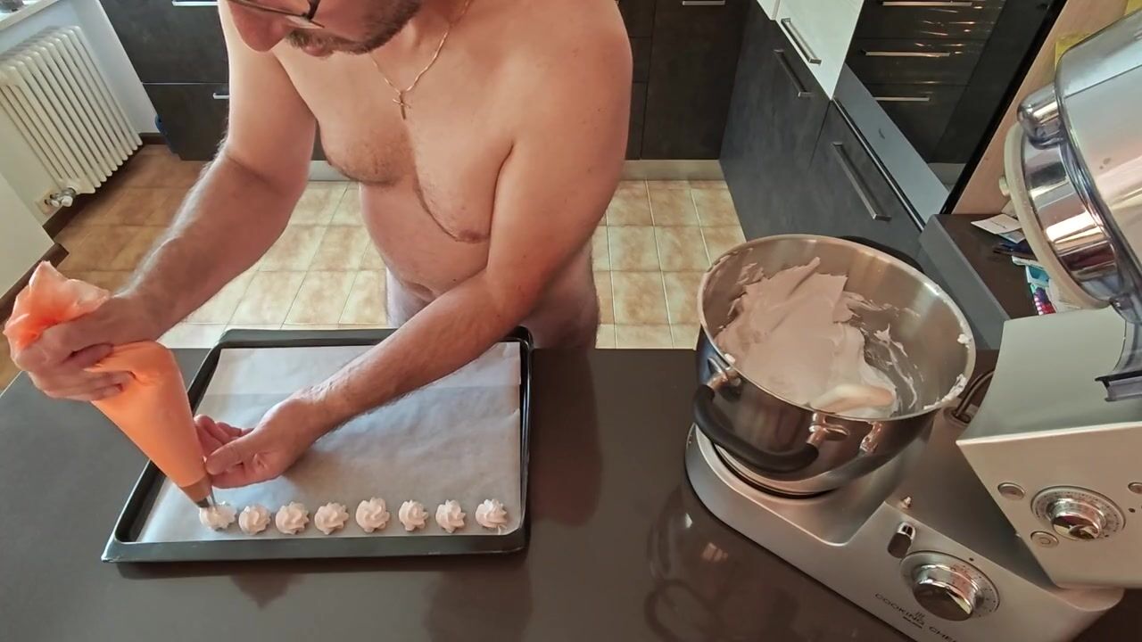 . Cicci77 after masturbating Pedro for more than 30 minutes and reaching a dry orgasmbed having prepared quite a bit of prepares to produce her first meringues all at 47%. After tricking Pedro to orgasm and collecting more than 7 grams of fresh sperm , he whips the and prepares meringues for his new clients.