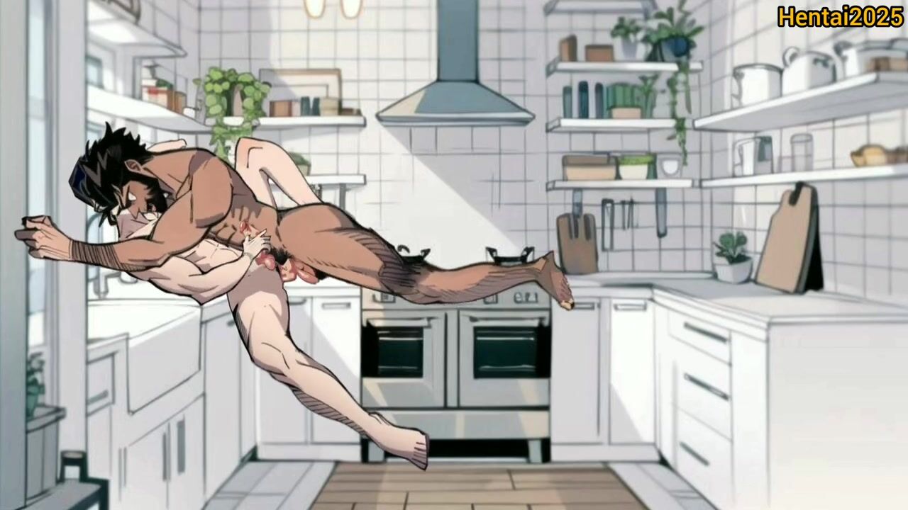 INTERRACIAL TWINK AND MUSCLED BLACK COLLEGE ROOMMATES IN THE KITCHEN ANAL SEX GAY CARTOON HENTAI ANIMATION