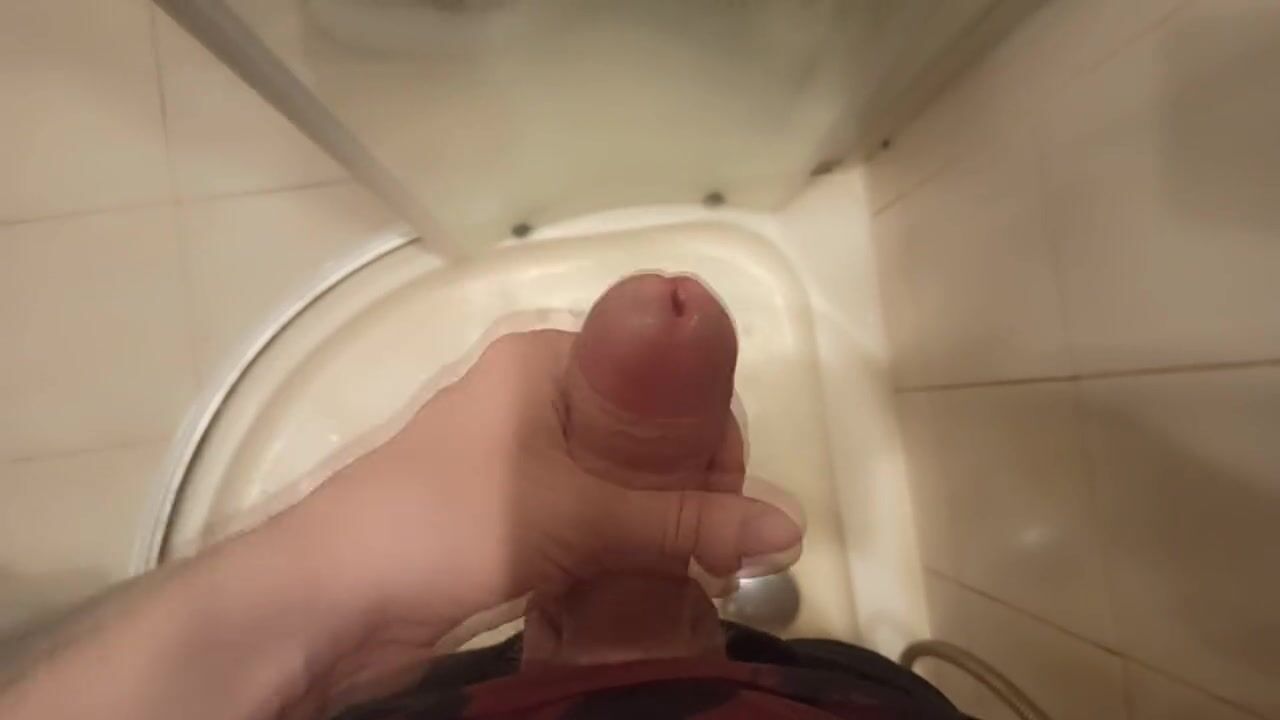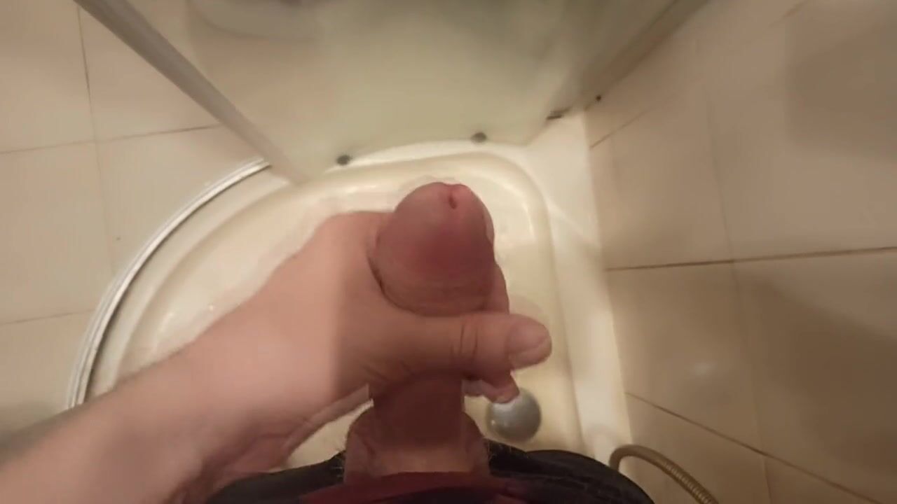THE GUY MASTURBATES HIS DICK STANDING IN THE SHOWER AND CUMS