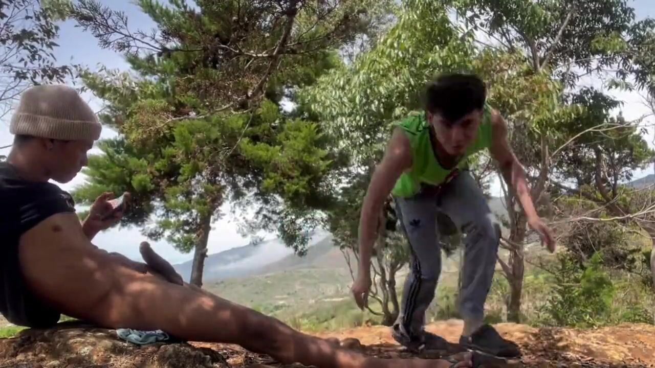 TWO HOT LATINO BOYS CUM OUTDOORS ON A MOUNTAIN