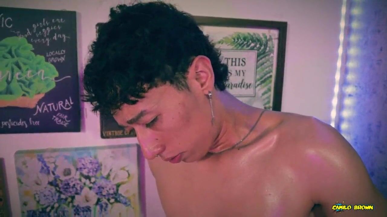 SEXY TWINK JACOBO TORRES JERKING HIS BIG UNCUT COCK WITH OIL AND SHOOTING A BIG CUM LOAD