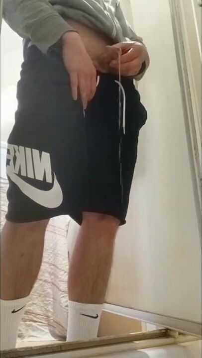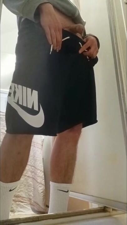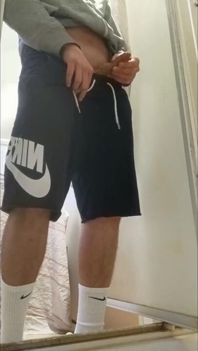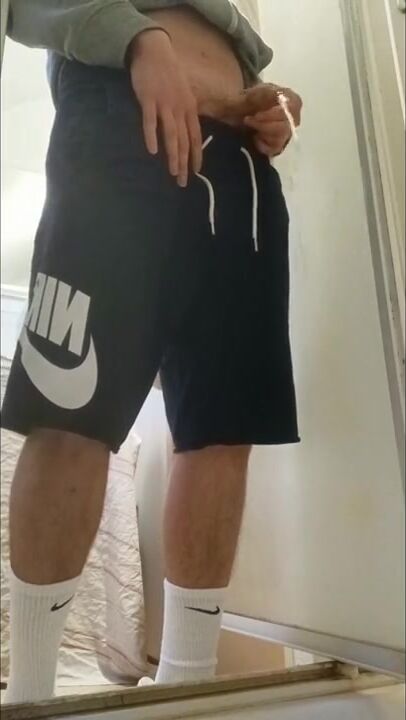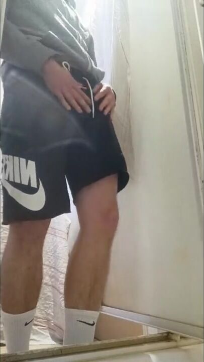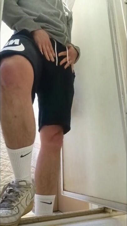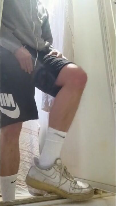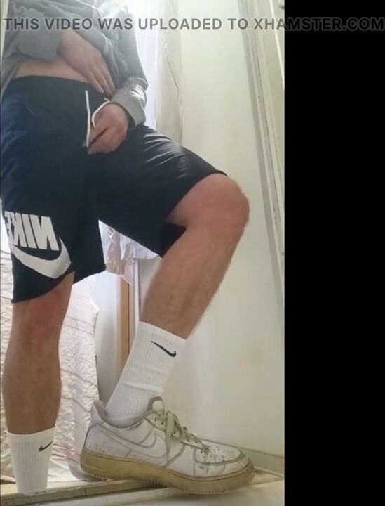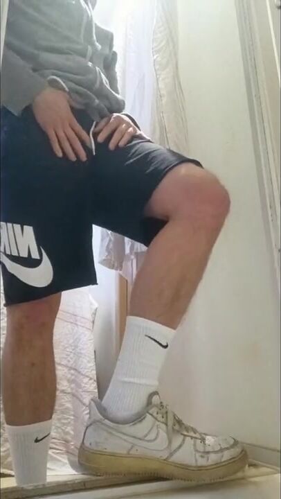 . I piss my friend's shower and I put on these Nike Air Force to feel him inside me with these Nike socks. I touch my AF1s and my Nike socks, it's so good and nice.