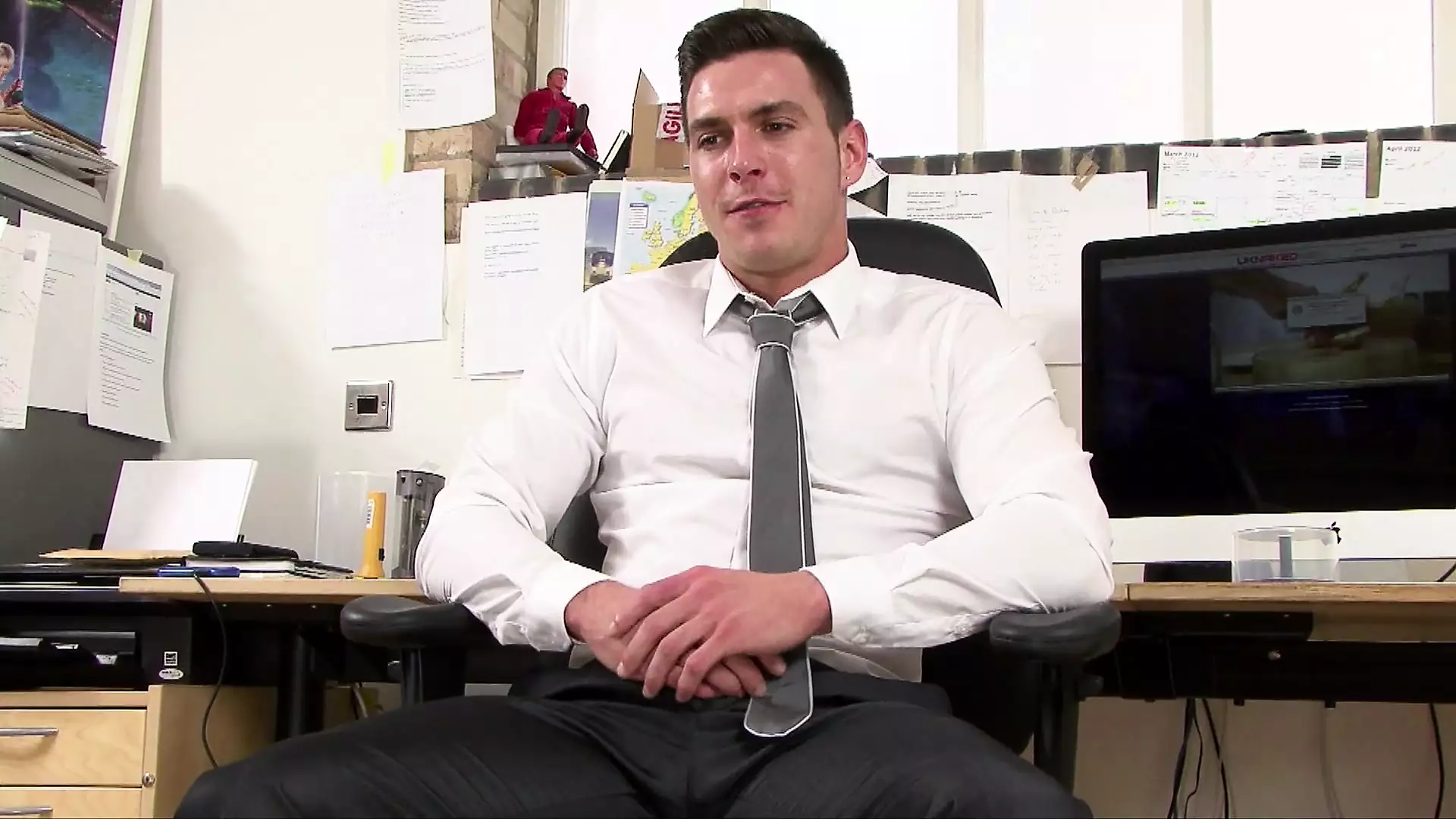 TIRED FROM WORK IN THE OFFICE AND READY TO STROKE A COCK TO
