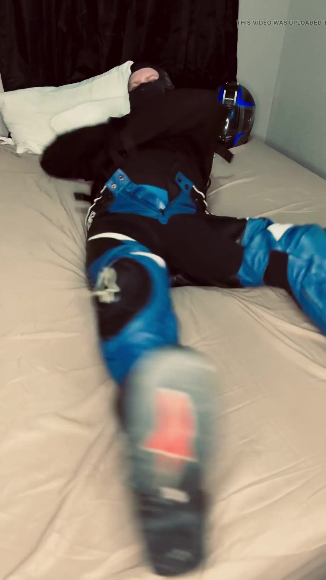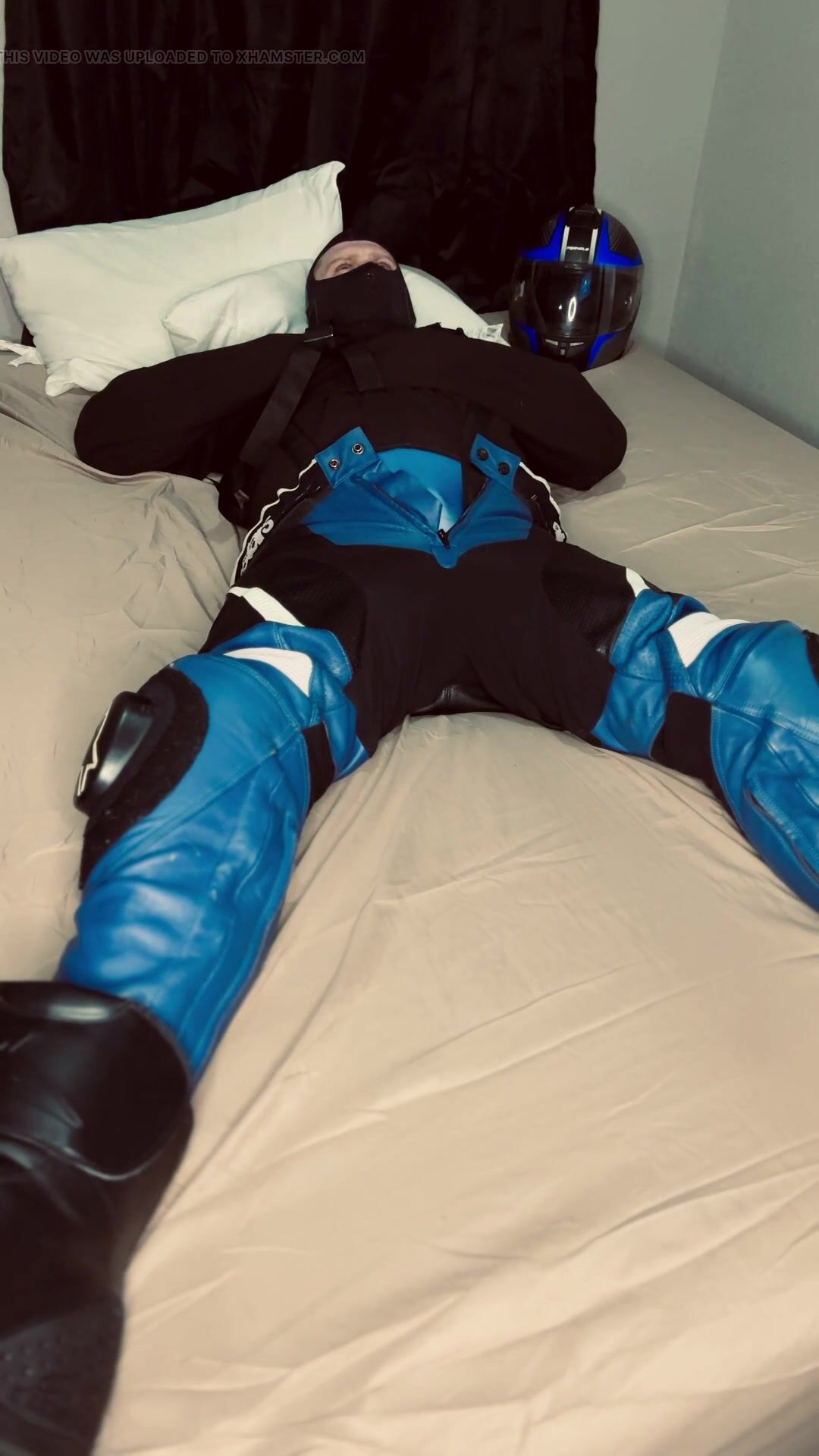 . A motorcycle stud is captured from the side of the road where he is taking a break from the heat. His captor puts him in a straitjacket and opens his leather pants exposing his manhood to be tormented later. Will the captured stud be able to break free of the straitjacket and escape?