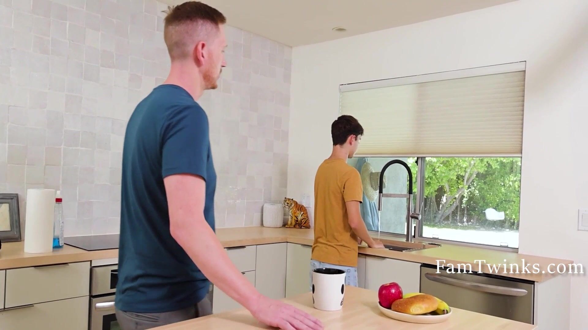 FamilyDaddy - Step Dad Thanksgiving Sex With Twink Step Son In Family Kitchen - Logan Stevens, Lukas Stone