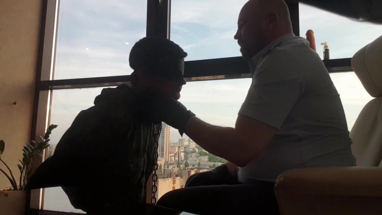 AND HERE I AM A POLICE DOMINANT - VERY HARD SLAPS IN LEATHER GLOVES OVER A HANDCUFFED SLAVE
